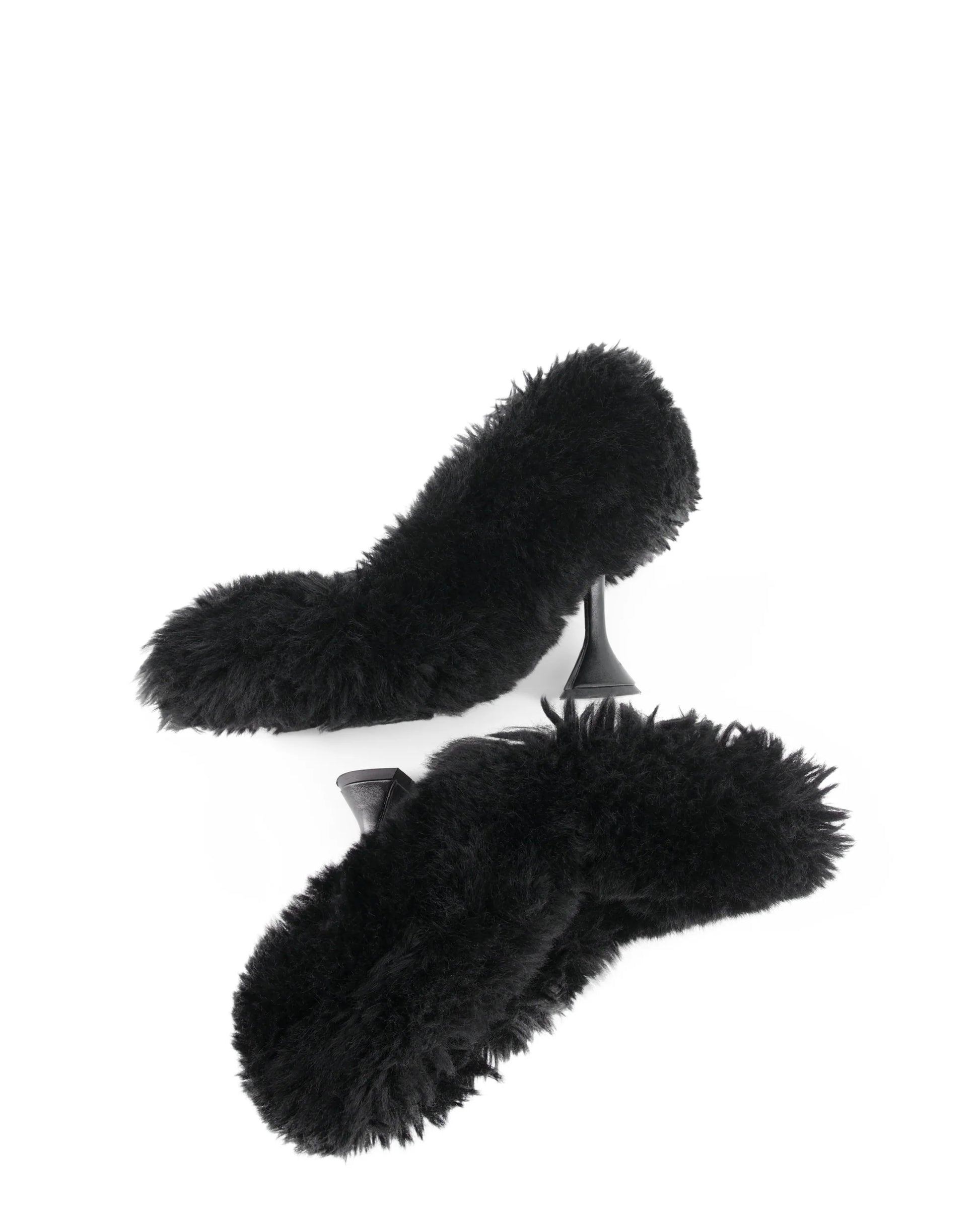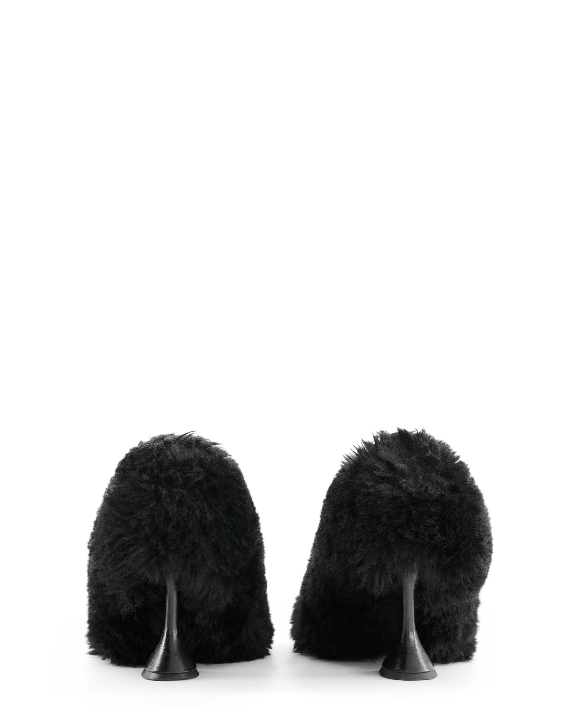 are made of artificial fur. Heel - 8cm/3inch. Shoe is sharp-nosed and all cover by fur. Despite of flashy look, these shoes are easy care. You just need to wash by hand and then blow dry. (it's the same as with hair:))