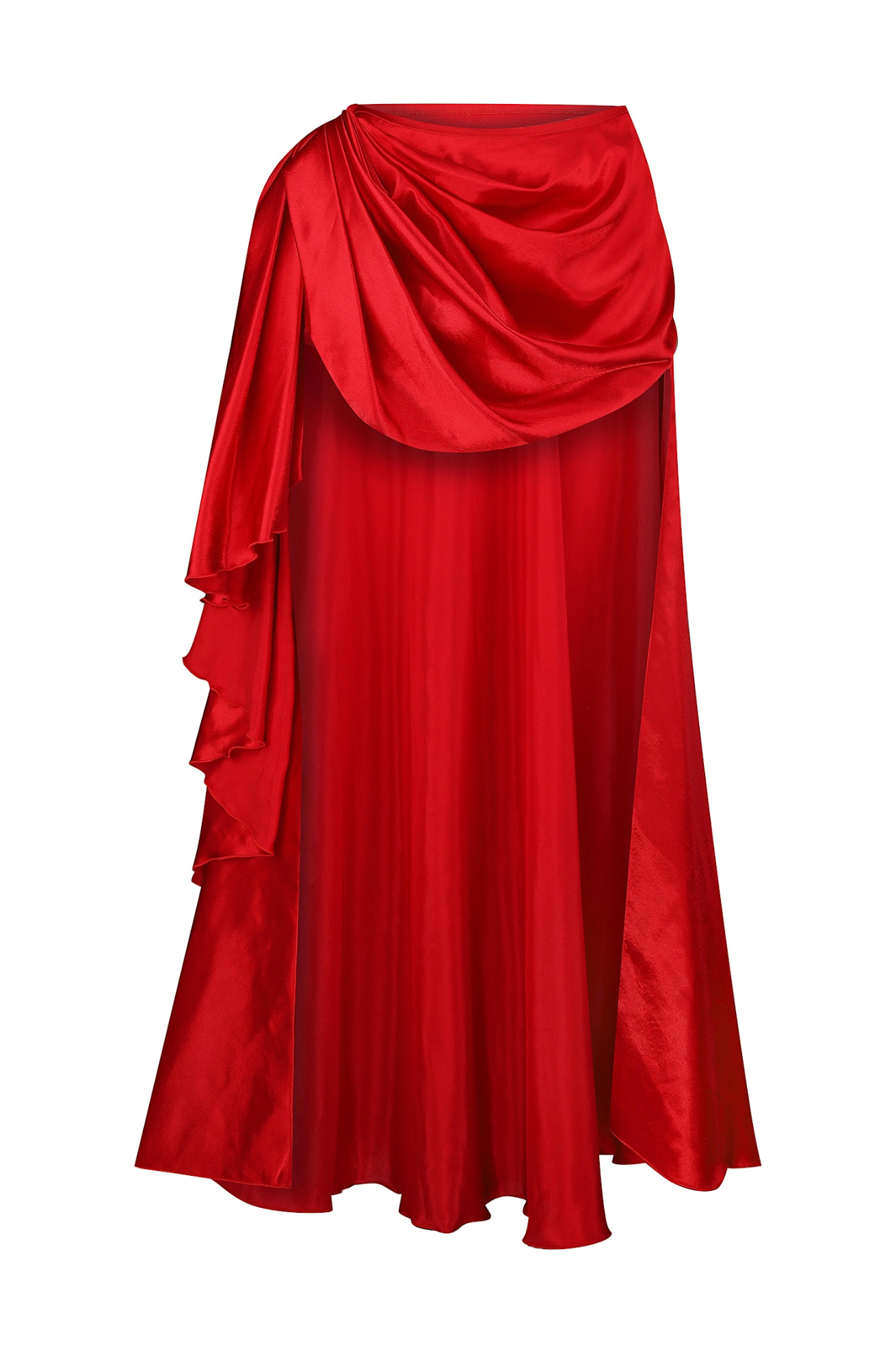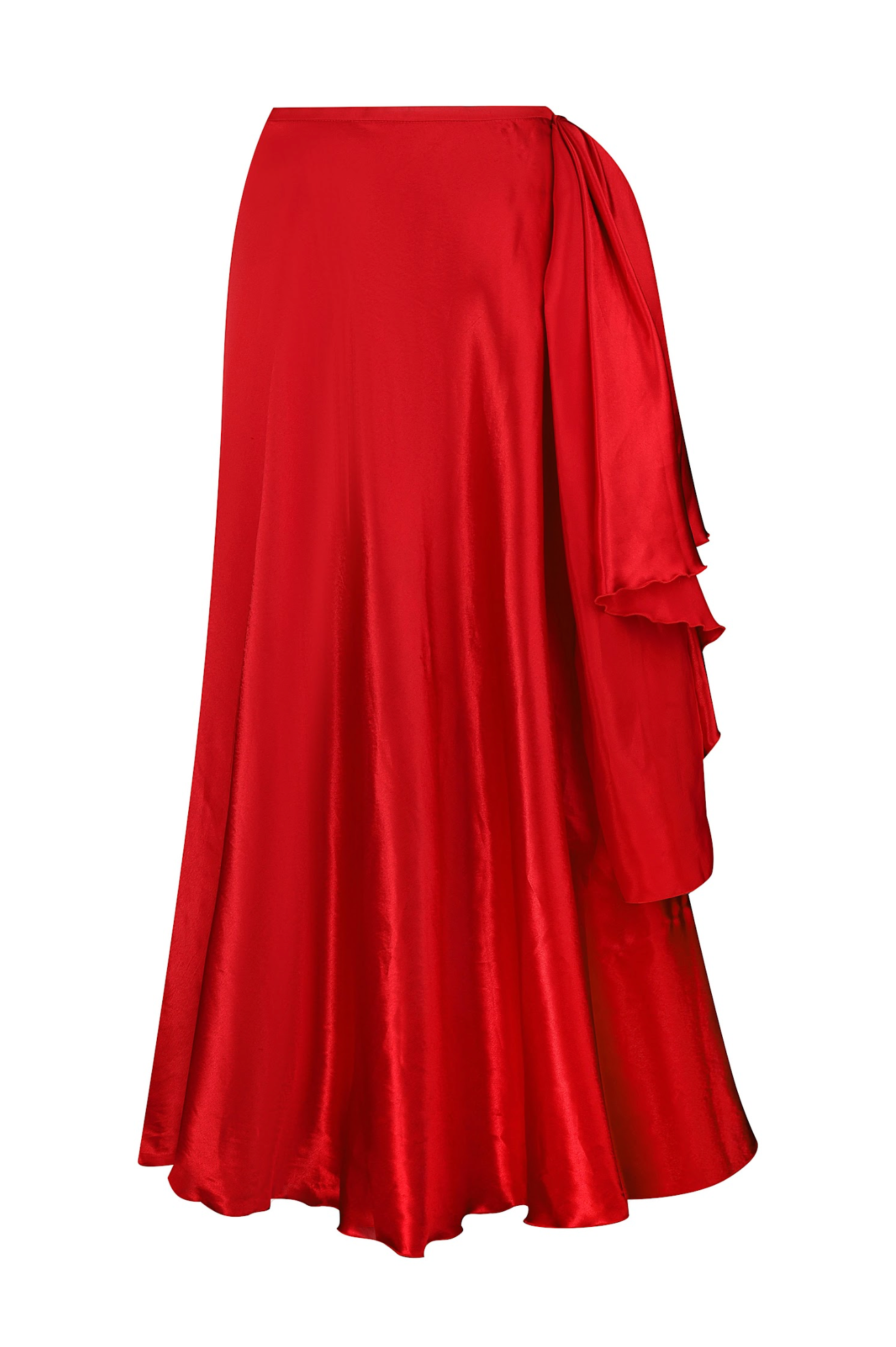 Featuring an asymmetrical hemline with a dramatic high slit, this skirt moves effortlessly with every step. The structured waistband ensures a flattering fit, while the layered fabric creates a dynamic, flowing effect.